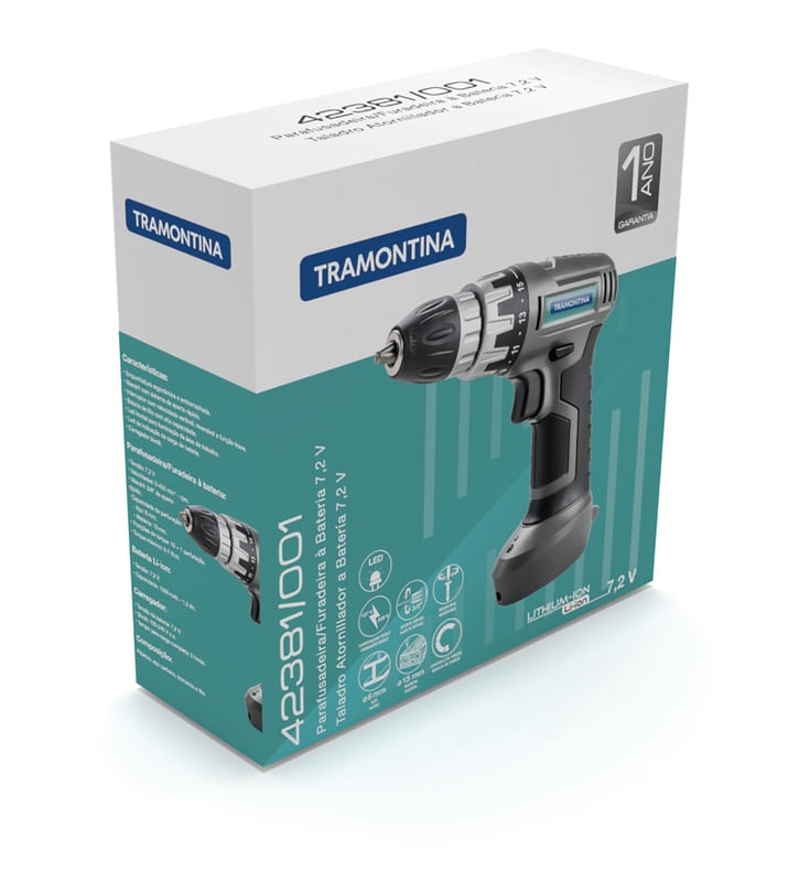 HerramientaMaquinariaBateríaTaladroTaladro Atornillador Tramontina Para Uso Doméstico 7,2 V
